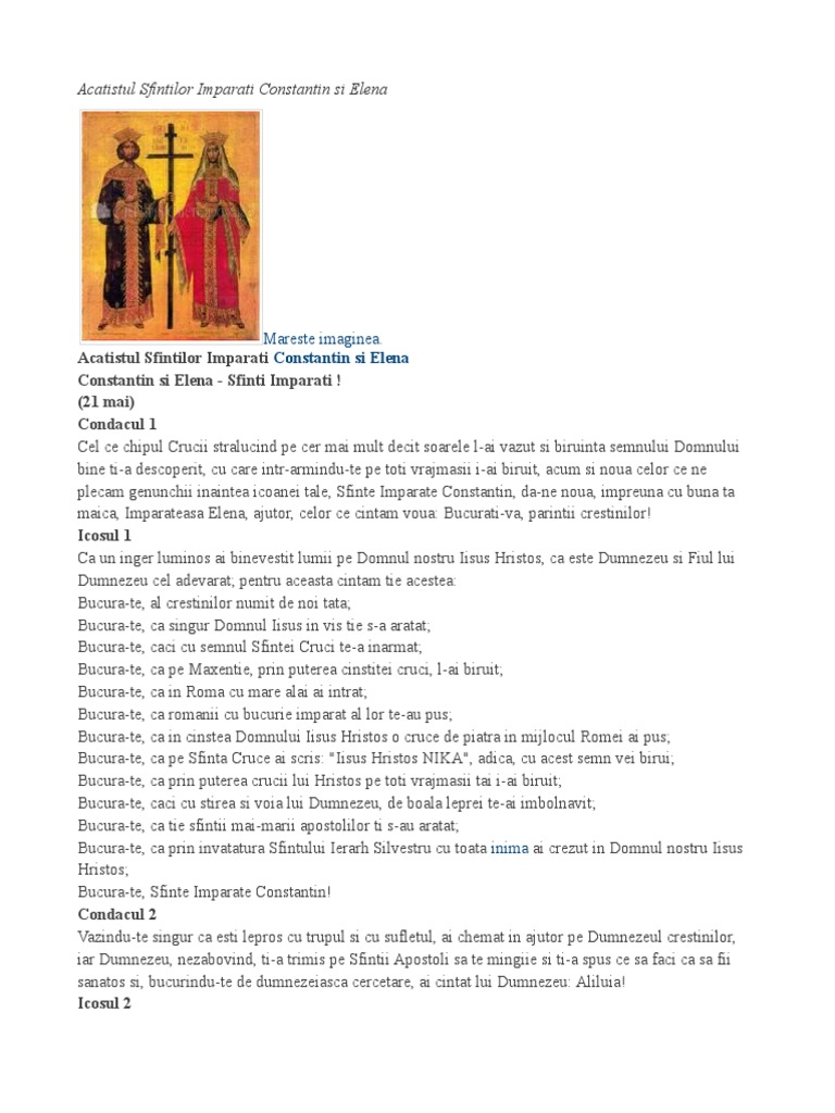 Acatistul sfintilor imparati constantin si elena. <> vândut și livrat de: Sărbătoarea îi evocă pe împăratul constantin cel mare și pe mama sa, elena augusta.